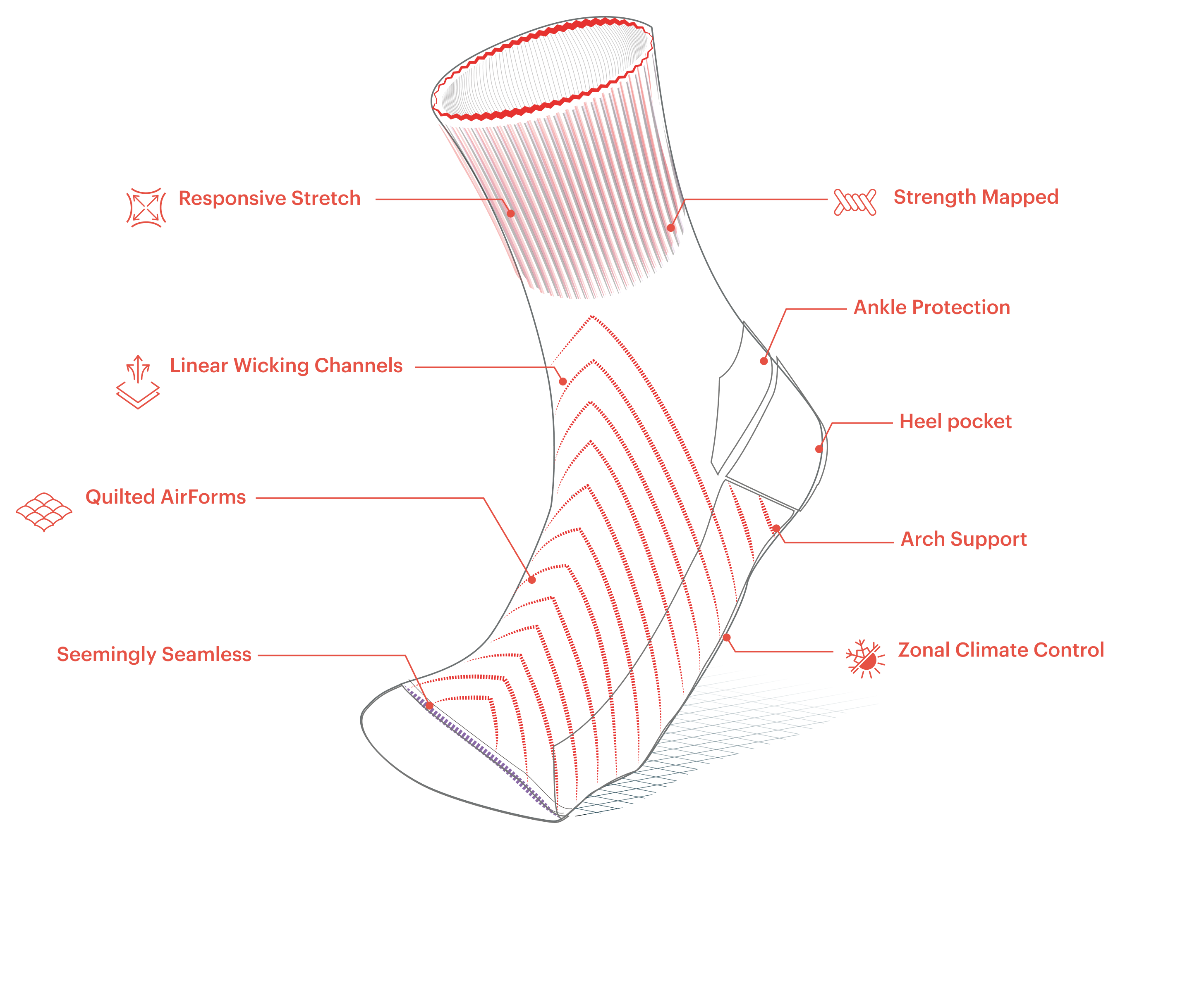 - OrbitFit™ fuses specific yarns in anatomically mapped 3D zones for a purpose-knit performance fit.